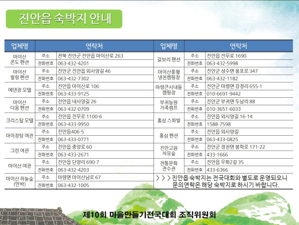 [10회전국대회_2017] 제10회 마을만들기전국대회 숙박지 소개 - 진안읍 숙박지 안내