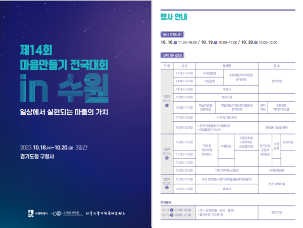 [14회전국대회_2023] 제14회 마을만들기전국대회 in 수원 전체 행사 안내