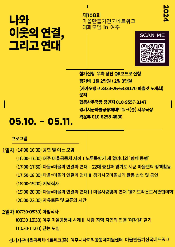 [대화모임 계획] 108회 마을만들기 전국네트워크 대화모임 in 여주
