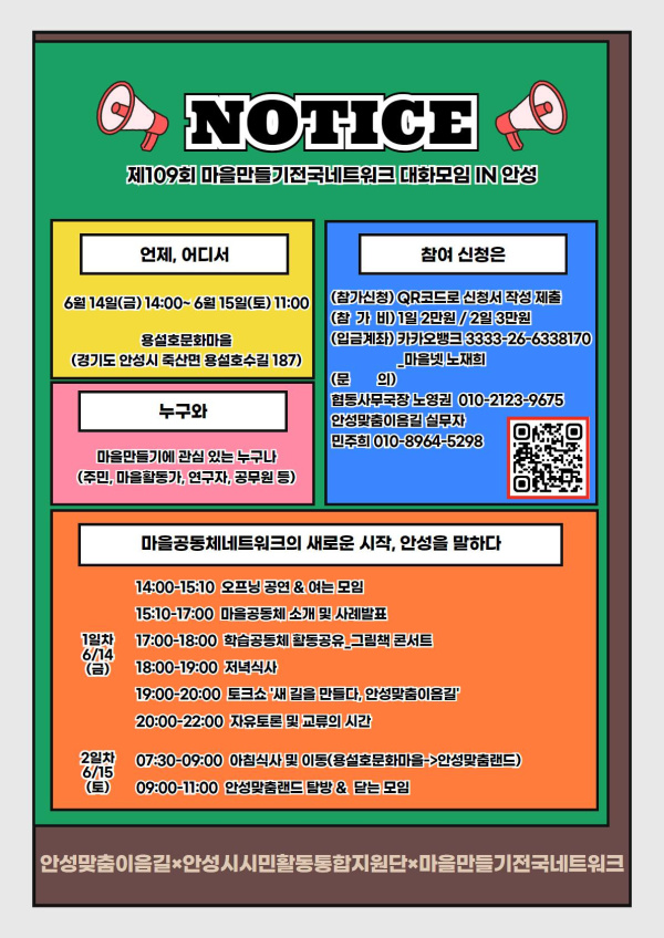 [대화모임 계획] 109회 대화모임은 "마을공동체네트워크의 새로운 시작, 안성을 말하다"