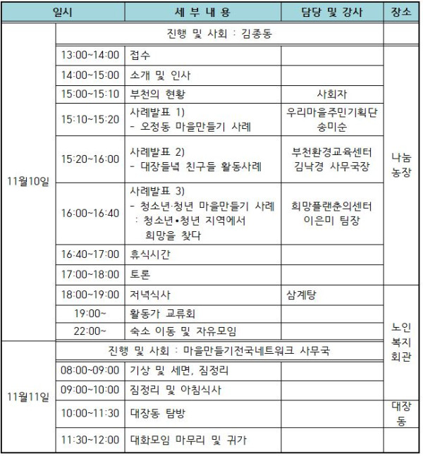 ▢ 장 소 : 대장동 나눔농장(부천시 대장동 304-1) 및 노인복지회관